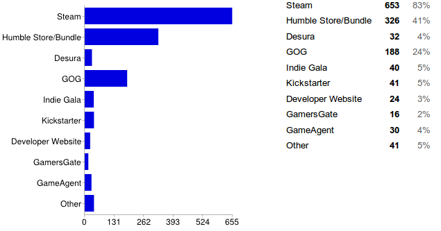 Quoting: EikeThat's suprisingly few people taking part. Are they getting tired of filling it in every month?I don't know... The one before this was a bit of a "one off" because the survey was on Reddit and got an extra 300-400 responses. Though I always see a lot more article views than survey responses, so I guess a lot of people just don't bother, which is a shame. It would be ideal to consistently have it above 1000.