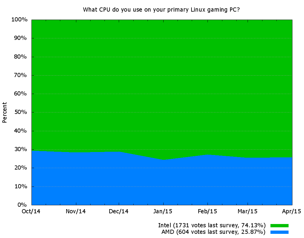 It might be worth reminding that Steam's statistics across all platforms are 52% for Nvidia, 19% for Intel and 28% for AMD. This disparity is probably a combination of the state of AMD video drivers on Linux and the fact that GOL most likely has a lower percentage of "casual" gamers than Steam as a whole, hence the higher Intel figures.