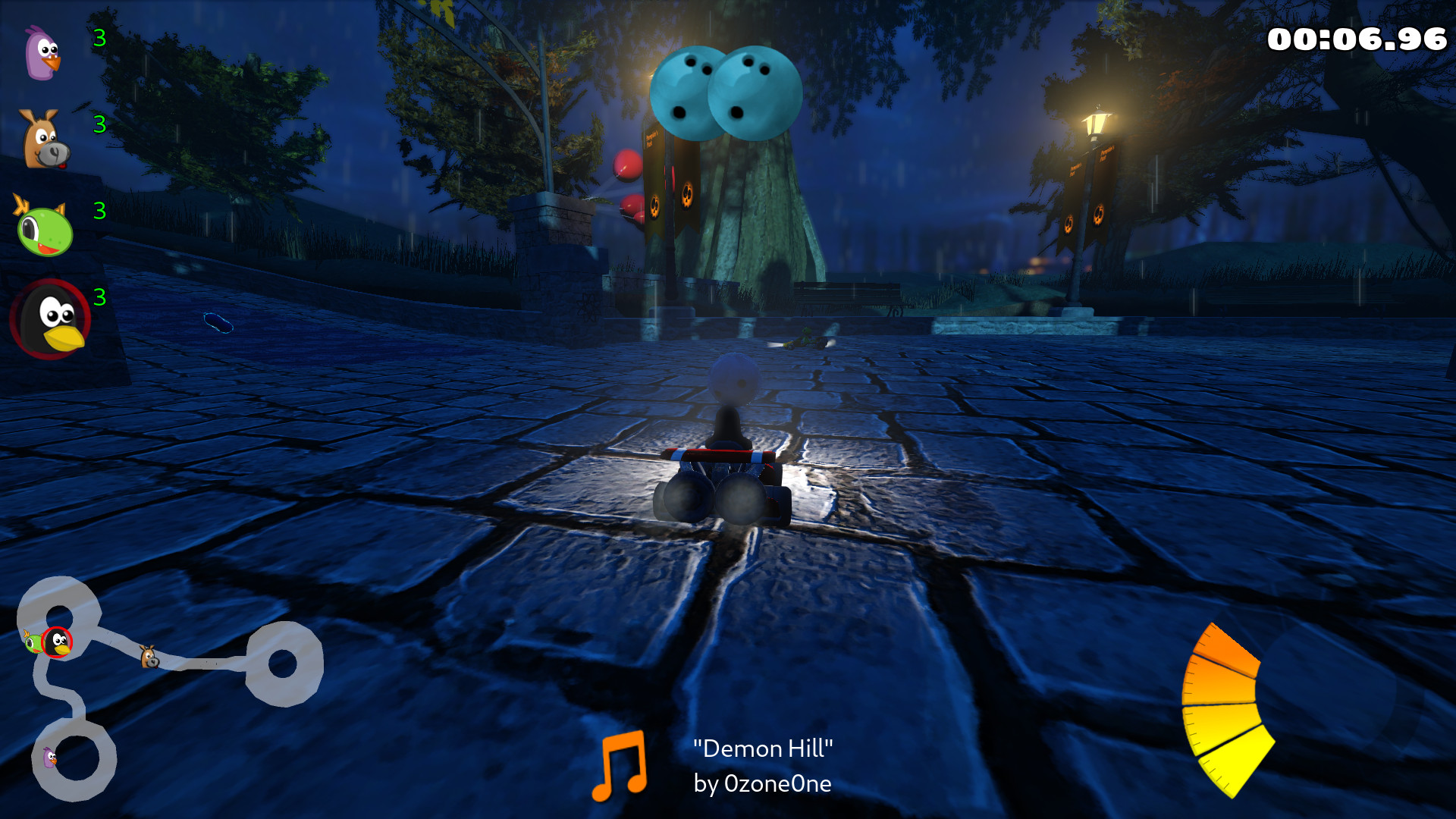And the 3D art also has that problem somewhat. While levels themselves generally look like most things belong together, there is a contrast between levels and carts/characters, as well as effects.