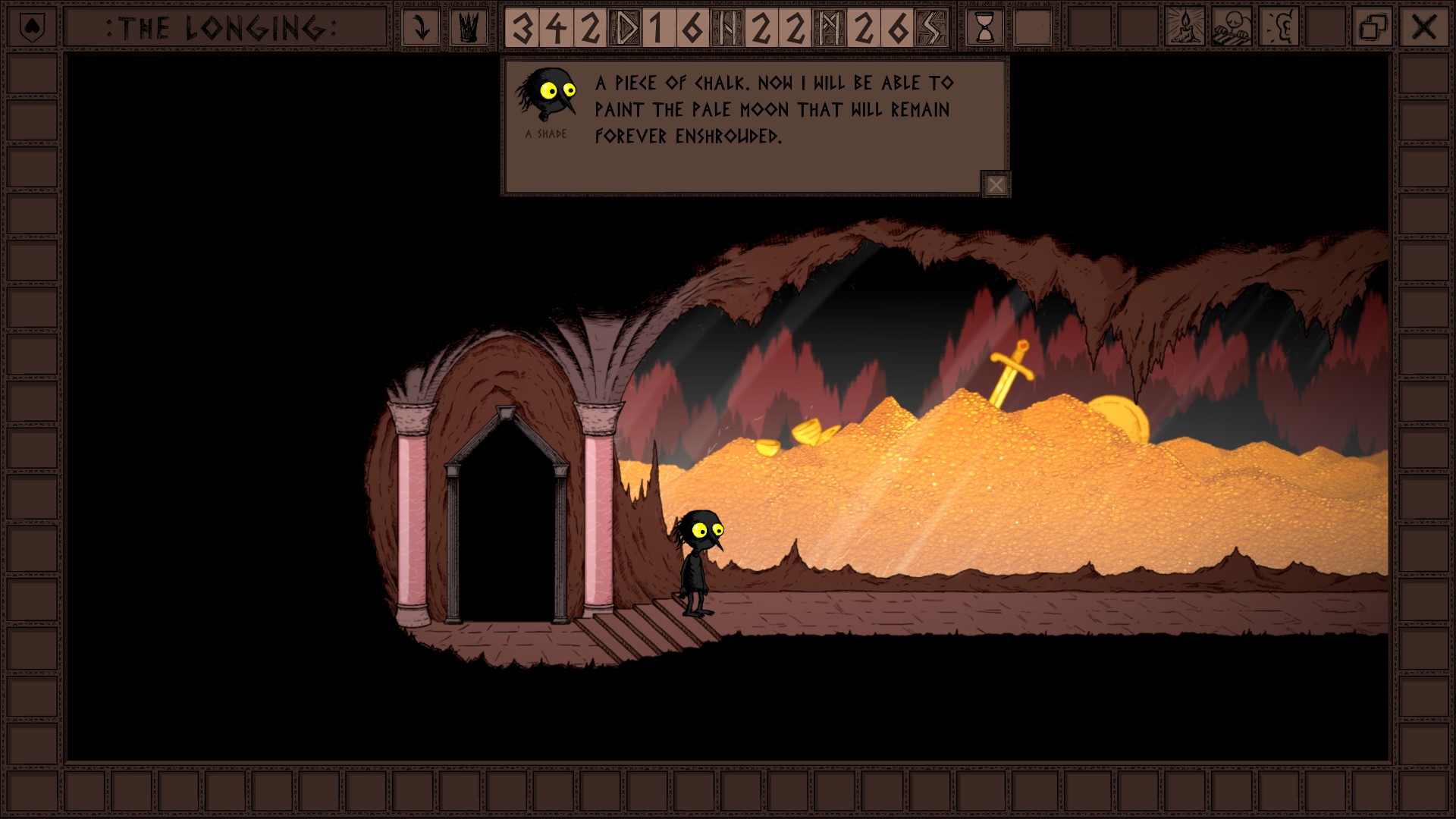 Okay, really. Was the long walk through the endless hall worth it? Well, I sure did get a lot of paper which Shade is currently putting to good use. The wait to go back home was certainly long indeed, although telling Shade to get going and then being able to close the game, go make a cuppa, do some other work and then come back later to find them at home is certainly part of what makes The Longing such an fascinating idea.
