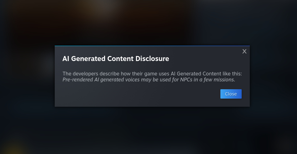 I really do love this. It has been saving me a lot of time recently on skipping over games that use generative AI. Something I try my best not to cover, since there's absolutely tons of games releasing all the time without it.