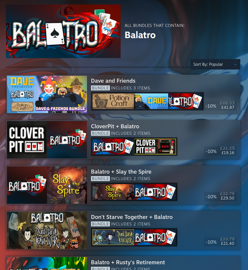 As long as a game is in 3 or more bundles you'll now see a new link below the last bundle show on a Steam store page. Like the example below of "See all 7 bundles" for Balatro: