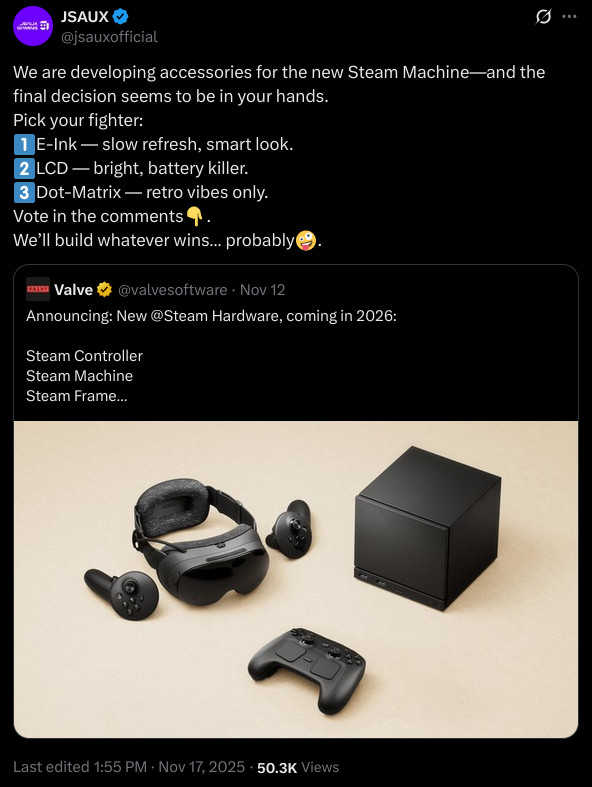 I wonder what else companies will come up with to empty our wallets for the Steam Machine and Steam Frame next year?