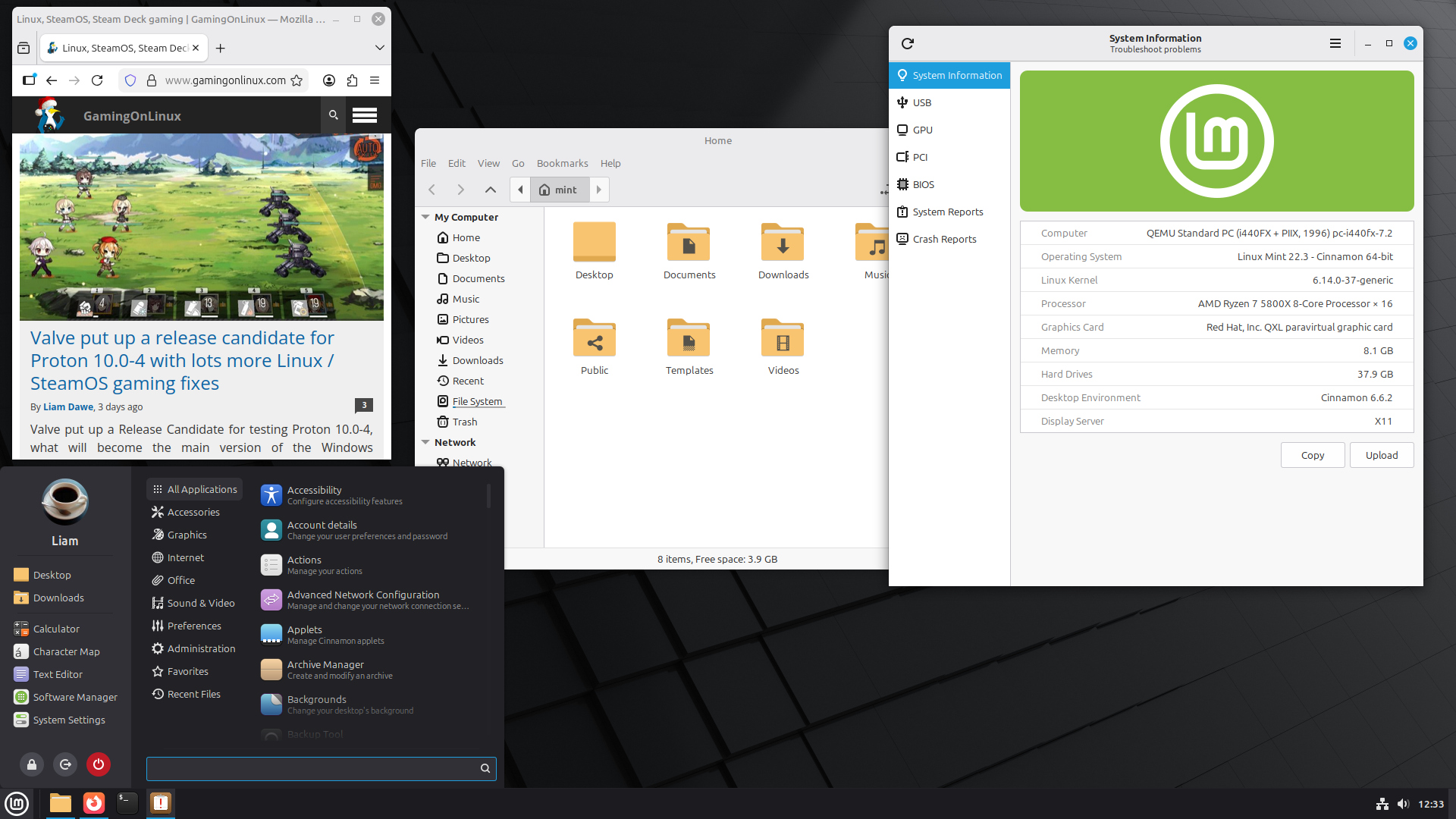 Pictured - testing the Linux Mint 22.3 Beta