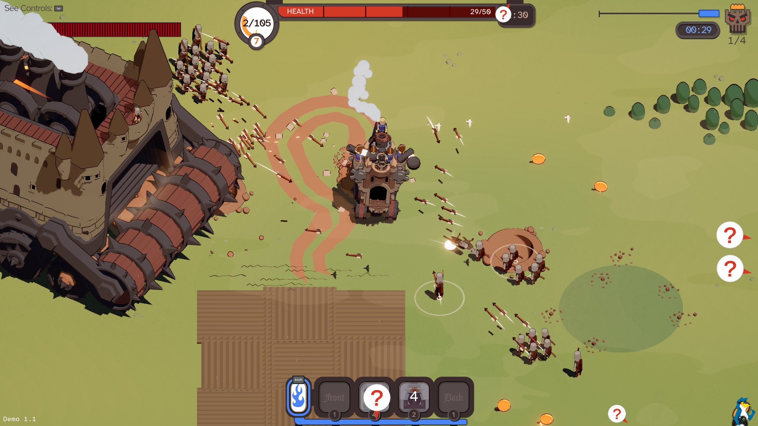 The boss castles are completely nuts too, like the steamroller of death shown in my screenshot above. The first time that rolled over me - I wasn't even mad. It was hilarious destruction, that really amped me up to want another run. I needed to take it down and explore more of it.