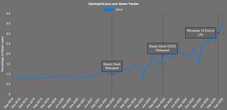 Valve have released the data for the Steam Hardware & Software Survey for January 2026, showing Windows getting a small bump while Linux and macOS drop.