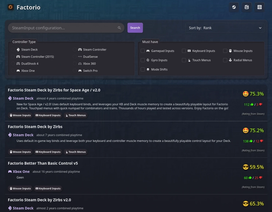 Since it's directly using the Steam API it pulls every community config for every game and controller that has been published. Pretty cool idea!