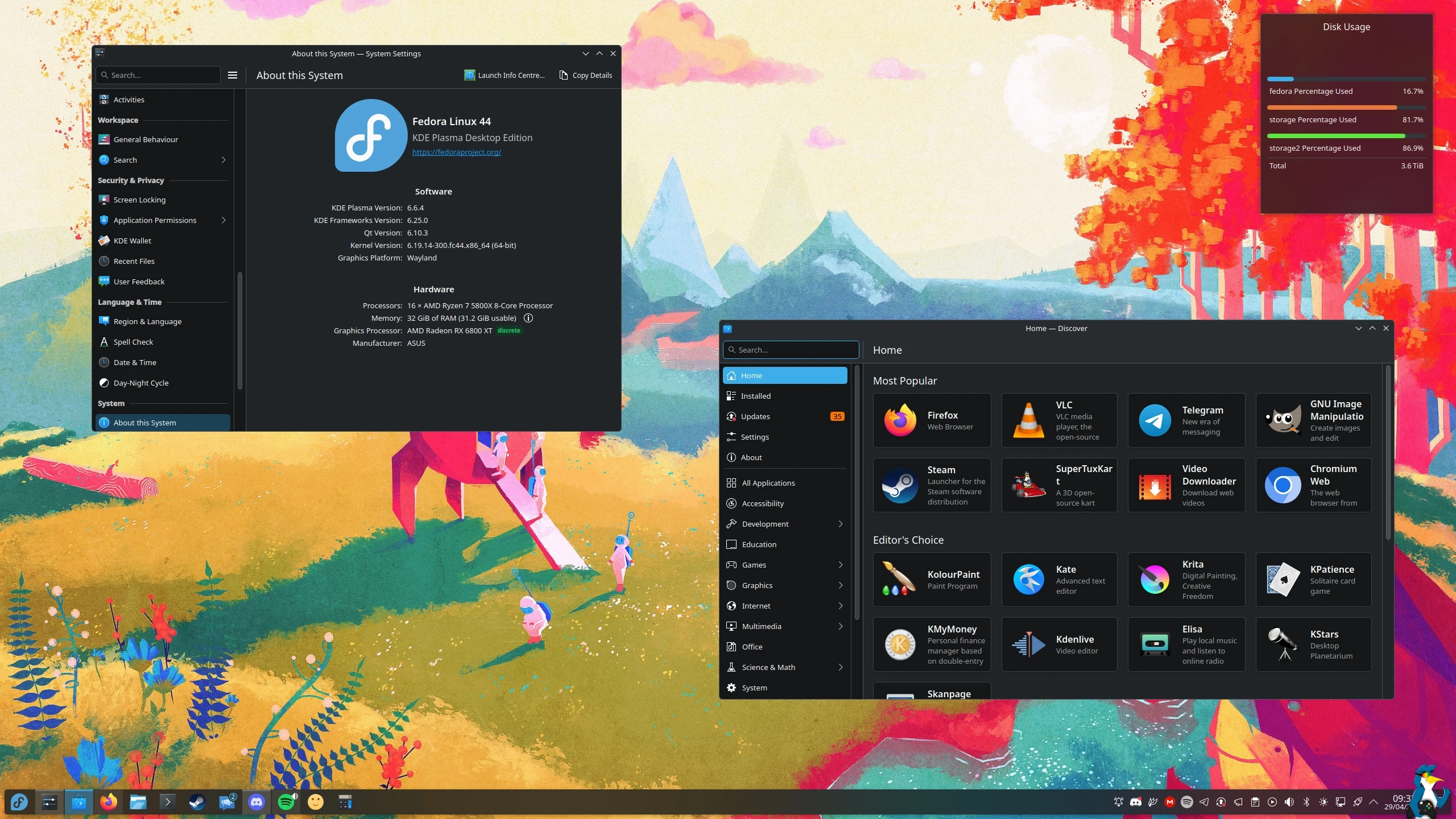 Pictured - my install of Fedora KDE 44