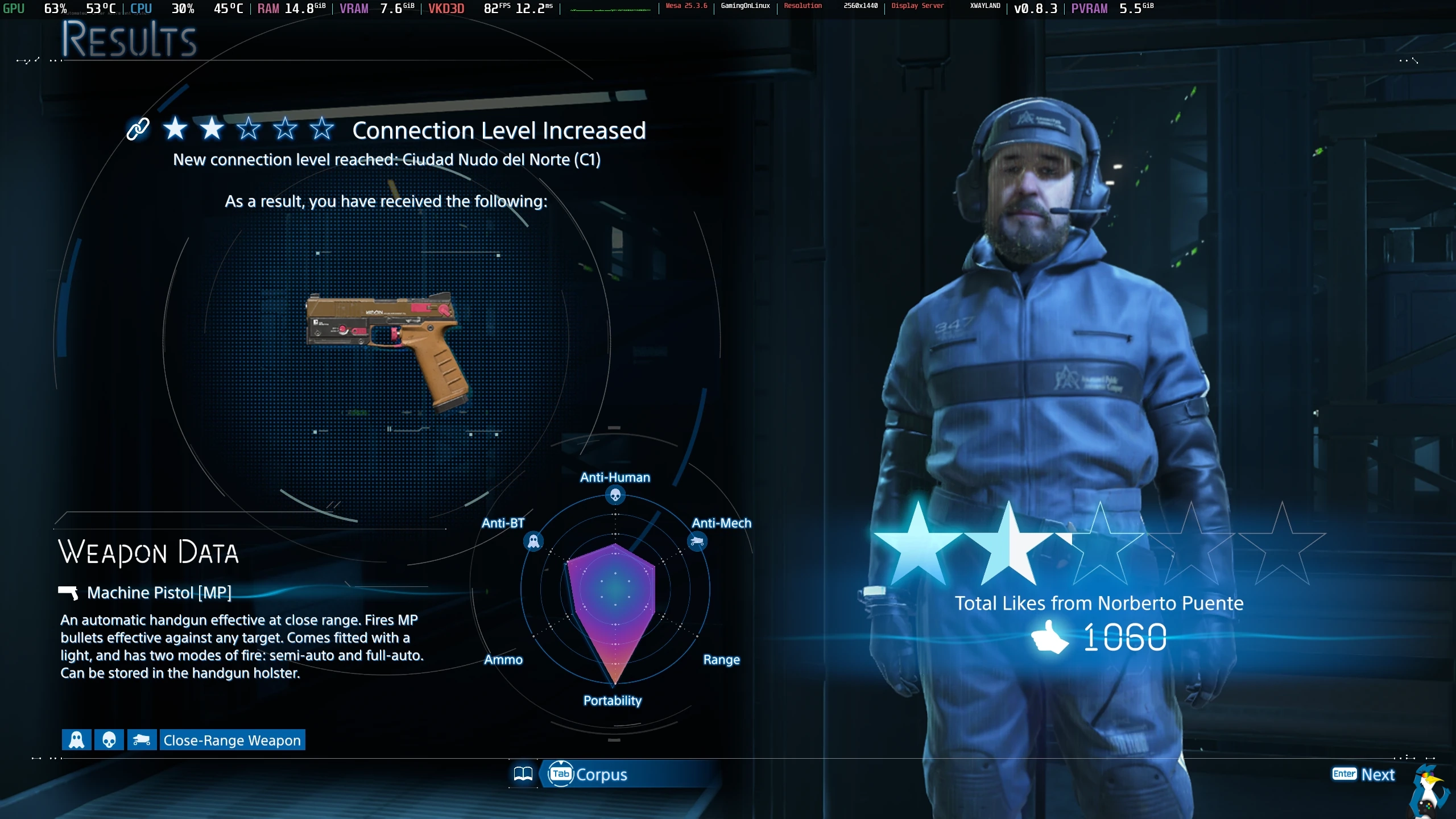 Here's how it looks with the horizontal setting in Death Stranding 2 on Linux: