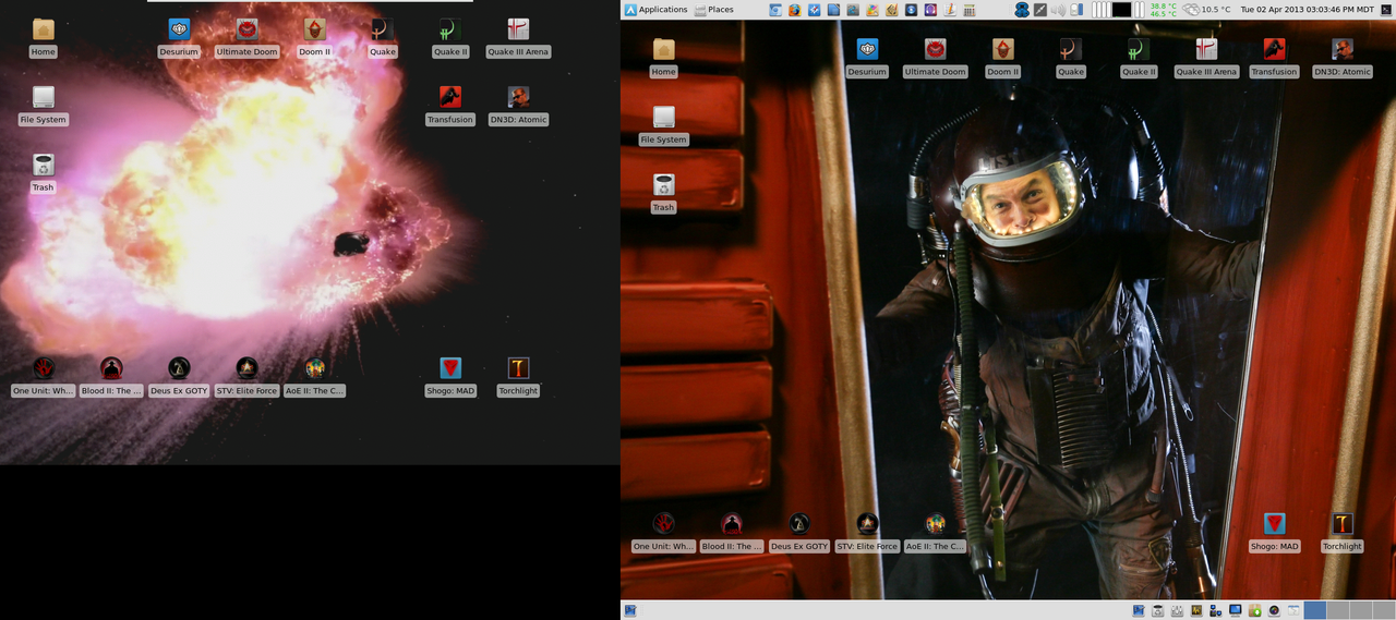 I also now have a Doom 3 icon on my desktop as I finally got dhewm3 built from the AUR, and as you can see I still can not run Desurium as I am still encountering issues with it and Boost 1.53.0 unfortunately. My system tray looks so empty without it. :(